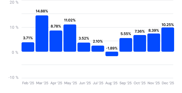 Users can track real-time equity curves, monthly returns, and risk metrics directly via our public link.